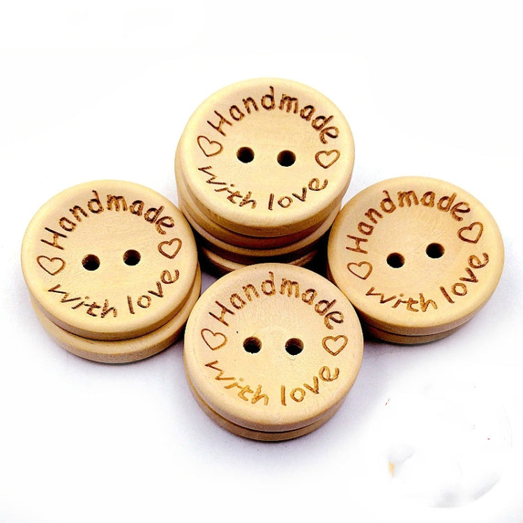 100 PCS/Set Natural Color Wooden Buttons Handmade Love Letter Wood Button Craft DIY Baby Apparel Accessories(25mm)