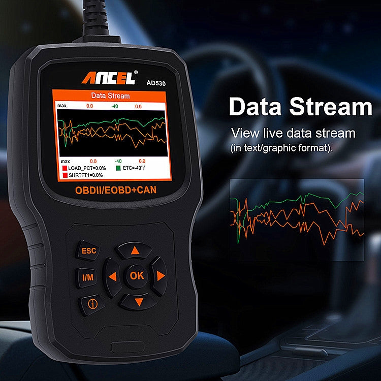 6. The AD530 engine light diagnostic scan tool can fully diagnose your cars data, displaying graphical data streams: calculated load value, engine coolant temperature, intake manifold absolute pressure, vehicle speed, intake air temperature, air flow sensor, air pressure, control module voltage, fuel rail pressure, etc. Compared with other simple scanners, AD530 can more intuitively understand the engines operating status.