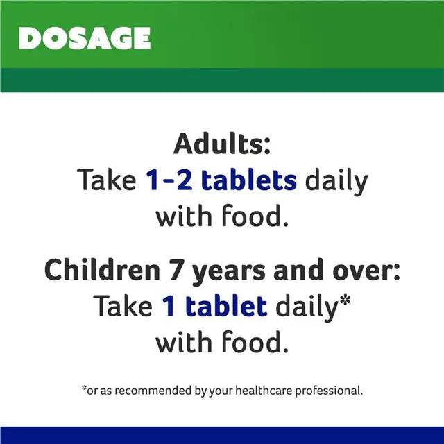 Children seven years and over: take 1 tablet daily or as recommended by your healthcare professional. Not recommended for children under seven years of age.