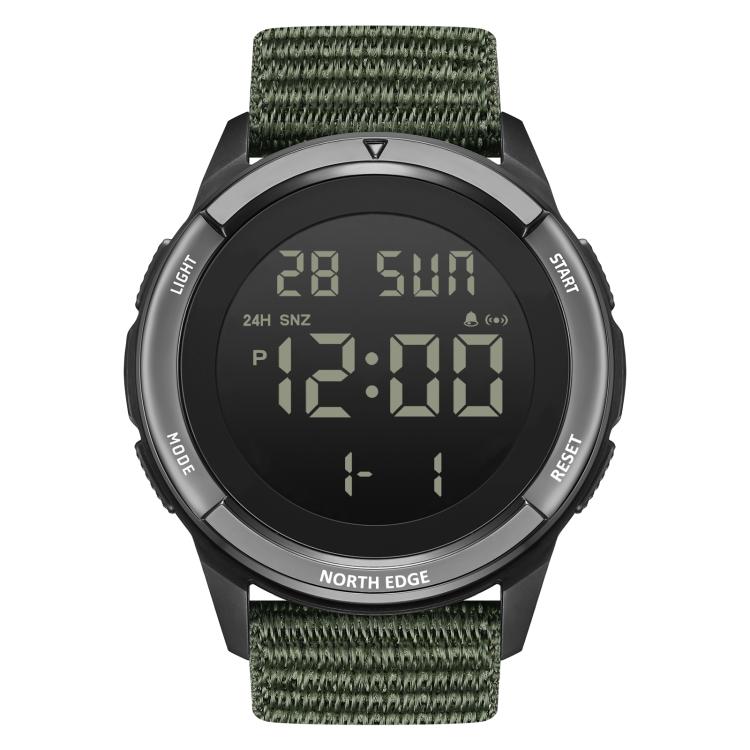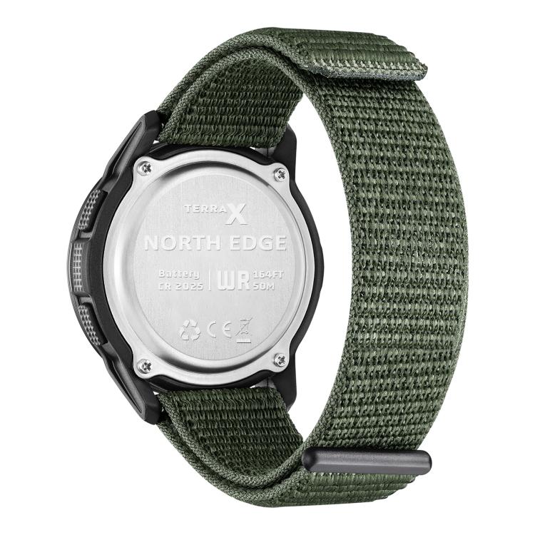 Designed for outdoor adventures, the North Edge TERRAX is lightweight, durable, and easy to use, ensuring accurate timekeeping even in extreme conditions. It features a military-grade luminous dial for easy readability, a 5ATM water resistance rating, and physical buttons for easy operation even with gloves or wet hands. The ultra-light, eco-friendly nylon strap provides comfort and durability, combining functionality with style.